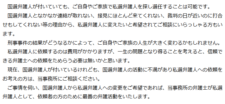 国選弁護人と代わってほしい
